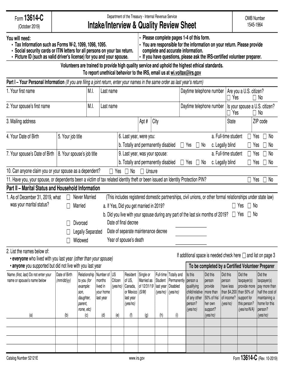 2019 tax preparation client intake form template. For each area the taxpayer has checked a box below there should be corresponding back up provided. Feel free to use this file by filling in only the applicable sections and submitting that to us along with your tax documents and info. 13614 c october 2019 department of the treasury internal revenue service. Tax return intake form. Complete our client intake forms below.