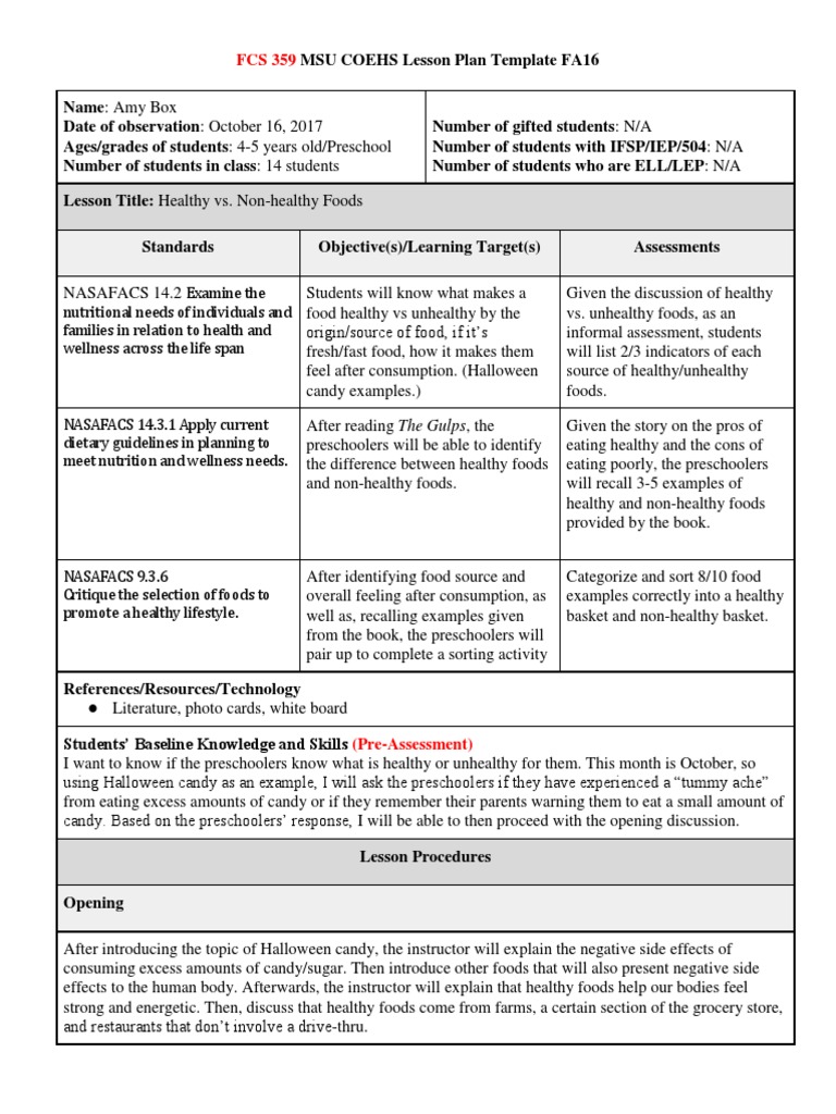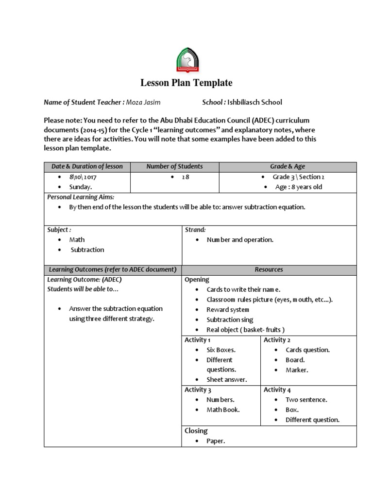 3 Year Old Lesson Plan Template