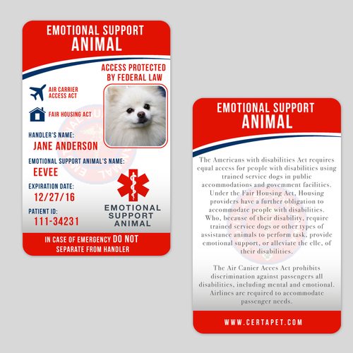 Identify your emotional support dog with an esa id card automatic entry in our online database for your dogs life. See the sample images below and click to enlarge.