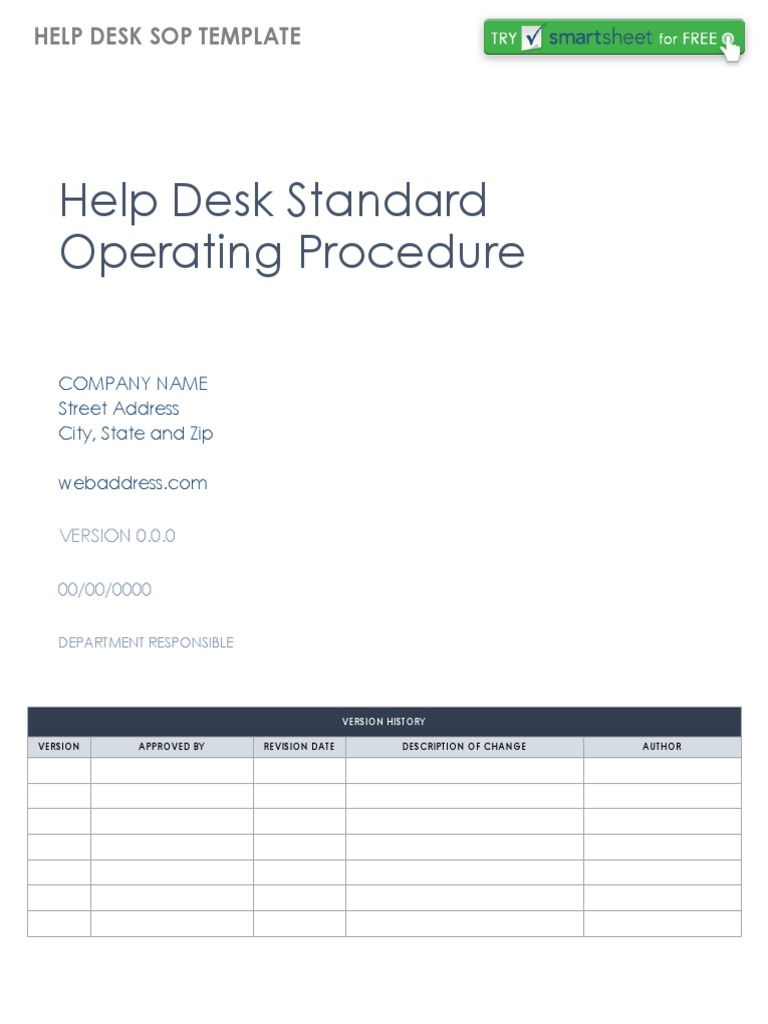Detailed work instructions images videos and other materials help produce a high quality system. Making the best choice. Instantly download free help desk standard operating procedure template sample example in pdf microsoft word doc microsoft excel xls apple pages apple numbers format. If you have ever read a standard operating procedure manual or looked at sops templates you ve seen that some forms of sop documentation can be extremely detailed. This allows staff to manage all responses in a structured and uniform way from initial contact to successful.