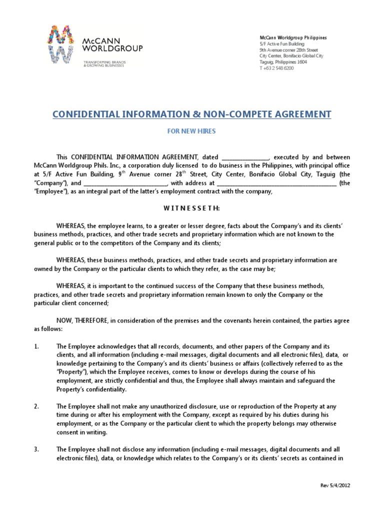 Non compete agreement sale of business template. One way to become an instant success in the business world is when you show something new that the consumers looks it as a need for them. You will find it to keep this new thing data to be confidential in the long run as you expand and supply is dramatically increasing. All you would have to do is replace the yellow highlighted portions with your information and you are good to go. Download the purpose of the agreement is to restrict the seller from entering into a business which will compete with the buyer after the sale for some period of time thus protecting the buyer s post. Protect your business by using the above mentioned template that is a non compete agreement template.