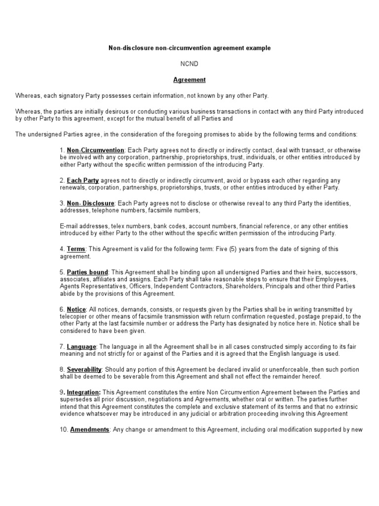 Referred to as the agreement combines a non disclosure a non competition and a non circumvention agreement and shall apply to all discussions regarding this project. Download and create your own document with non circumvention non disclosure and confidentiality agreement 115kb 4 page s for free. Do not use a u s. This non disclosure non use non competition and non circumvention agreement is entered this. The parties intend to engage in substantive discussions and sharing of confidential information regarding certain new and useful business opportunities trade secrets business entity formation and structuring and tax planning.