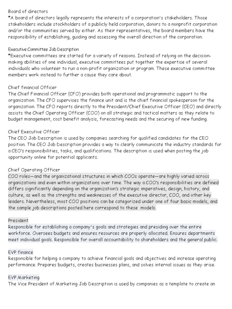 This sample job description shares how one smaller sized growing multisite nonprofit organization configured the role of executive director. Feel free to use and modify this sample. Executive director the executive. Although each of the above mentioned descriptions are great this example by casa is an ideal job template for most nonprofits searching for an executive director. In this sample job description for a small nonprofit organization the vice president of development both supports the executive director s fundraising activities and is a key fundraiser responsible for expanding and diversifying the organization s funder base.