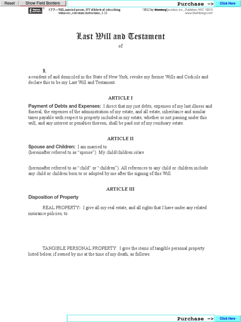 Nys Last Will And Testament Template