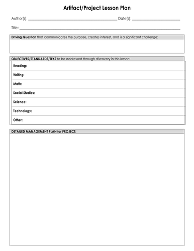 Project Based Learning Lesson Plan Template