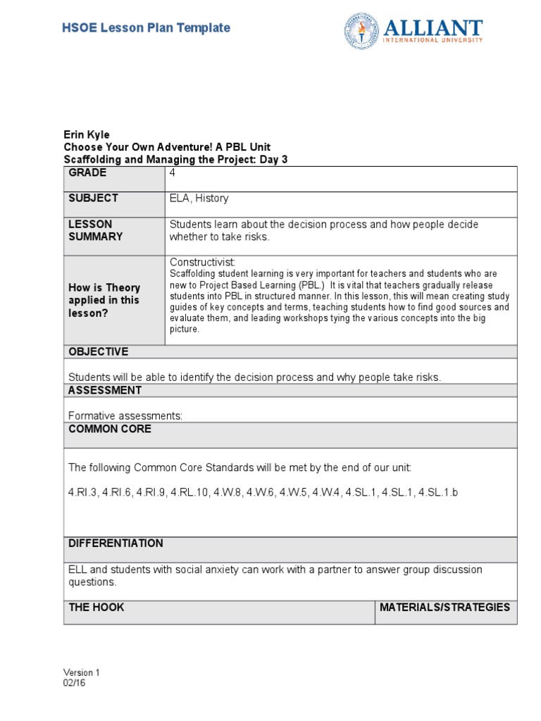 Start with the state or national standards you are required to teach. Your name as lesson author here the following passage is included in all integrated learning lesson plans. Creativity and innovation rubric. Project based learning lesson plan. Pbl lesson plan example.