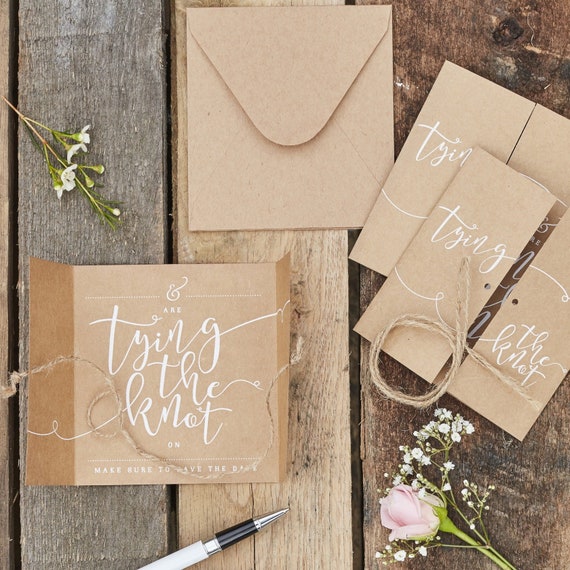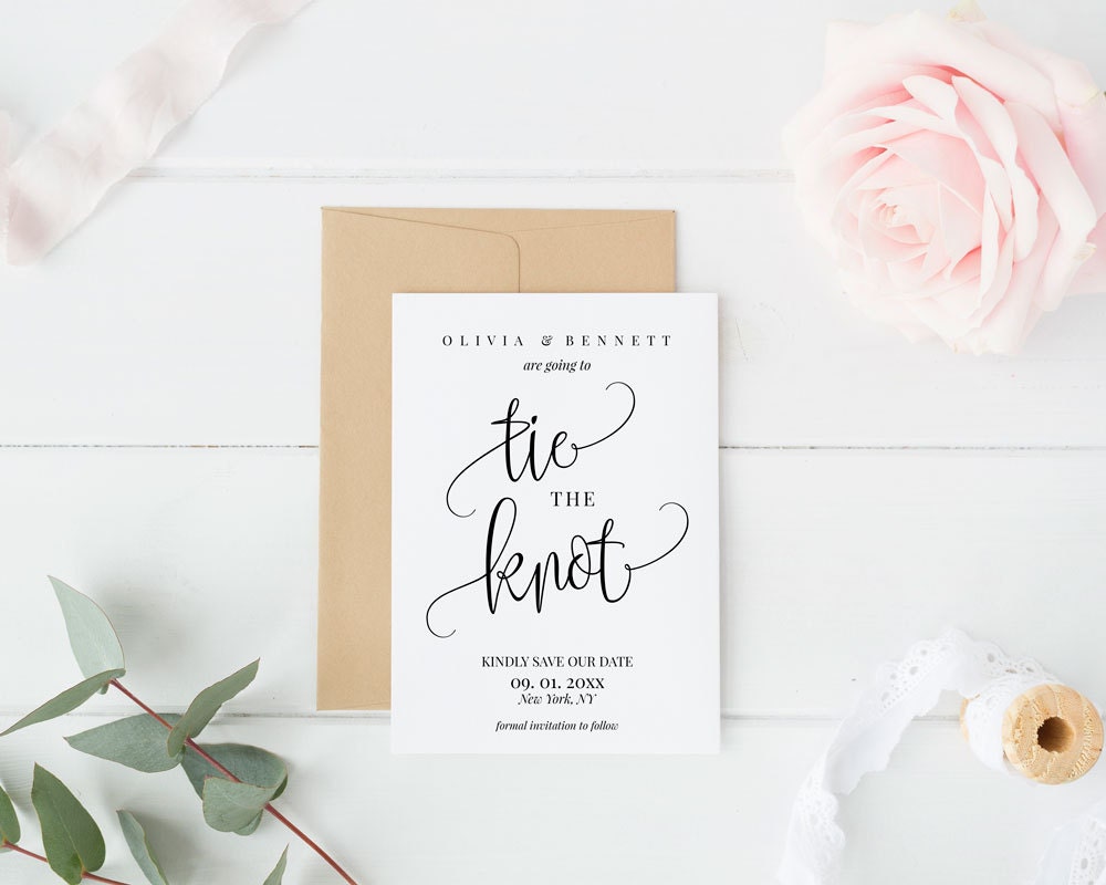 Wedding templates save the dates greeting cards. Eco friendly tying the knot save the date tie knot rustic wedding kraft save the date kraft tying the knot kraft tie the knot set of 65 sweetsights. By the knot 1 min read. Pull the knot so it s almost taut when the card is folded and the cord is about 5inches long then tie a knot to secure it on the other side 6. There are 131 tie the knot save the date for sale on etsy and they cost 40 07 on average.